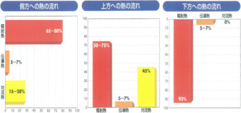 また、下方への熱移動に関しては、実に93%を輻射熱が占めています。