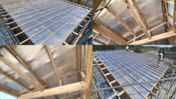 そうです、平屋建ての暑さを解決するためには、屋根面に出来るだけ輻射熱の反射率が高いアルミ遮熱シートを施工することです。