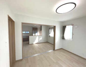 リビングとダイニングの間に3枚引込建具を採用し、1LDKと2DKを使い分けられるような可変性を持たせたプランニングで、ご提案させて頂いたコンパクトな平屋のお宅です。