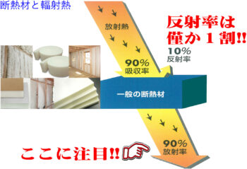 その結果、一般的な断熱材では、輻射熱(放射熱)の90%程度を吸収し、そして放射します。